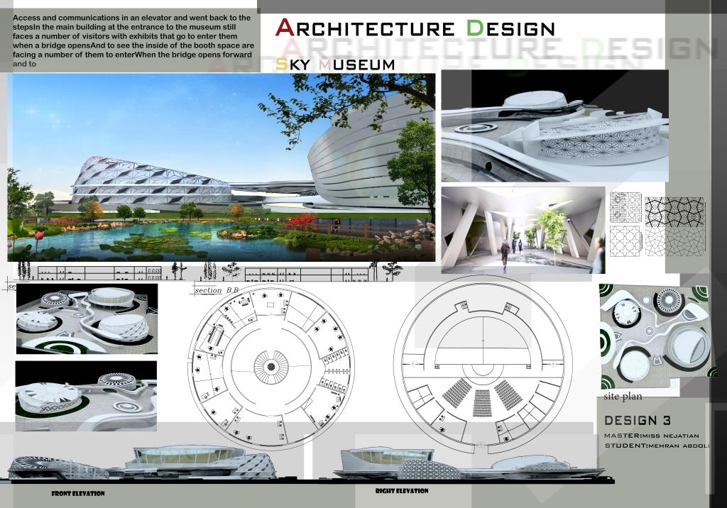 - انجام پروژه طرح 3 معماری (طراحی موزه)